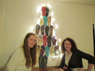 We decorate the table for Christmas, and play games and do sketches in between the courses. As you can probably tell, the Brousses are very dramatic, and it's quite a sight when all of them, plus their exuberant other halves, are all together under one roof! Here Anna and me are making roses out of serviettes.